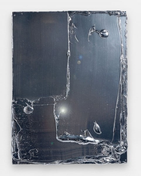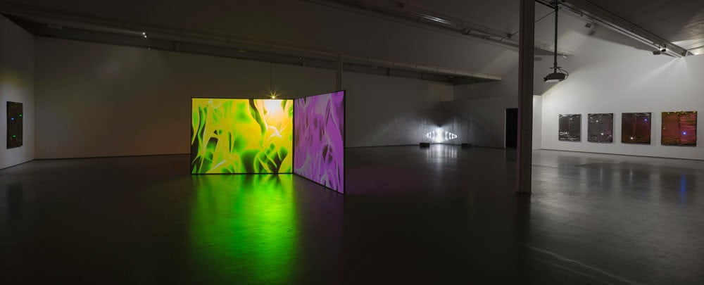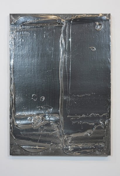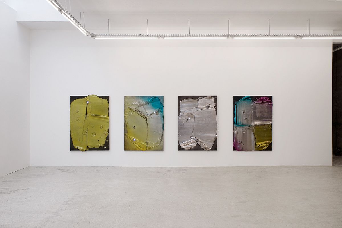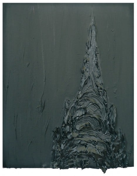 Tout juste rentrés d’une année new-yorkaise, ils débarquent avec un intérêt renouvelé pour le noir, un noir puissant devenu la couleur fétiche de leurs empâtements désormais monochromes. L’architecture de Gotham City qui s’insinuait depuis dans leur peinture pour la parer d’une dimension rétro-futuriste se mue aujourd’hui en un néo-constructivisme allégé de sa dimension utopique première. Oscillant entre surépaisseurs maximales et légèreté de l’application au spray, le symbolisme ici à l’œuvre nous entraîne dans un ésotérisme sombre. The eighth sphere, (la planète des âmes perdues, pour les non-initiés à l’occultisme), se dessine à Zoo galerie comme un environnement pictural, tendu jusqu’à sa négation.Un wall-painting inspiré de la technique de vaporisation d’aquarelle utilisée par Klee et Kandinsky —mais réalisé sauvagement à la manière des Splashers new-yorkais— pour écrin, les toiles des Quistrebert se délitent jusqu’à s’abolir dans leur principe même. Dialoguant avec des tableaux de facture plus classique, des croûtes noires et luisantes semblent couler du mur. La technique de leur Chrysler building (Chrys, 2009) que l’on connaissait s’affaissant vers le sol en une masse huileuse se radicalise ici : il n’y a plus de châssis, de toile ou même de peinture, juste une surface, une croûte. Et ce n’est pas l’abstraction du ballet d’ombres et lumières qui compose leur dernier film qui démentira ce nouveau formalisme à l’œuvre chez les deux frères.